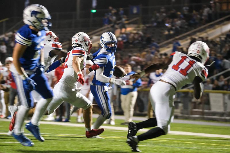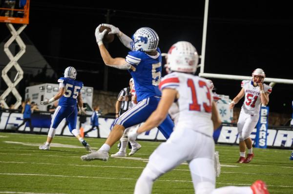 Dylan Ours catches the ball at the game between Morgantown and Fairmont at East-West Stadium.