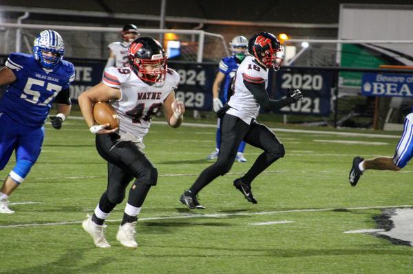 Dylan Ours with the ball at the Morgantown Mohigan vs Fairmont Senior High Polar Bears game.
