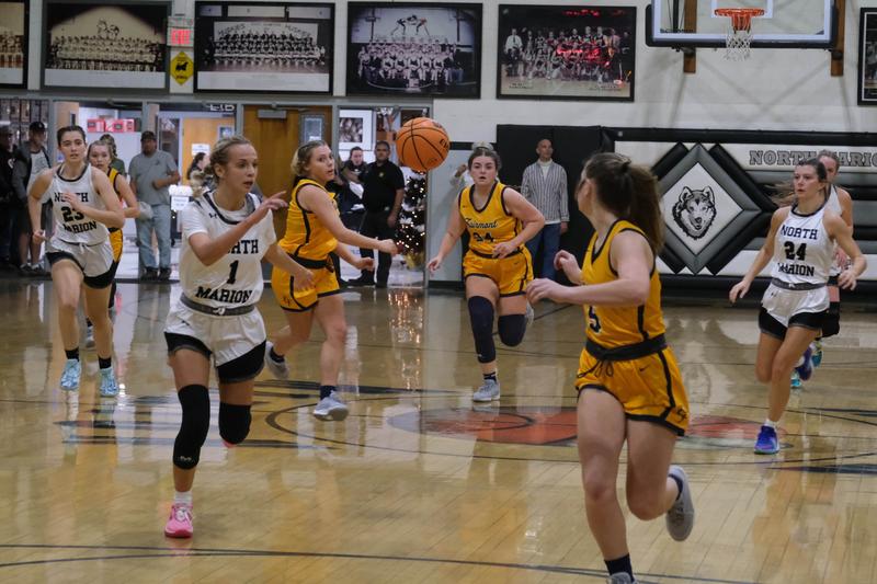 Kasey Rogers, 5, prepares to receive a pass while moving up the court at the East Fairmont vs. North Marion High game on Dec. 14, 2023..